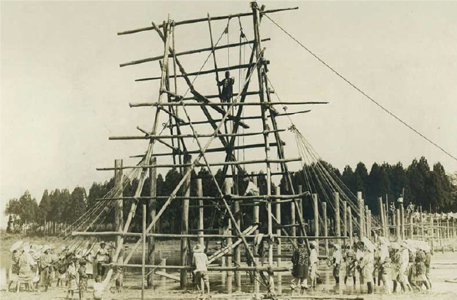 当社による橋梁工事風景(昭和初期)