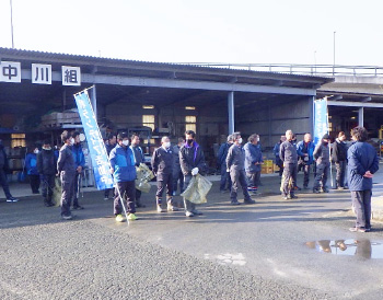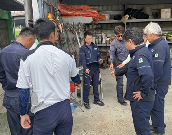 近隣河川敷の定期的清掃活動で、地元玉名市と安全、快適に住み続けられるまちづくりを目指しています。