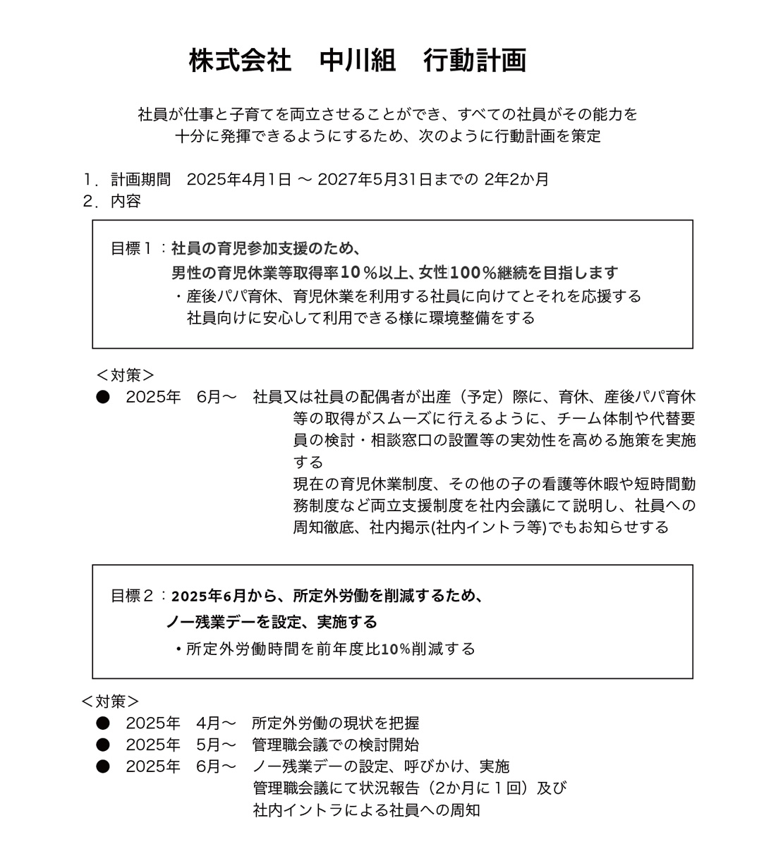 「子育てサポート企業」として厚生労働大臣の「くるみん認定」を取得に向けた行動計画を策定しました。