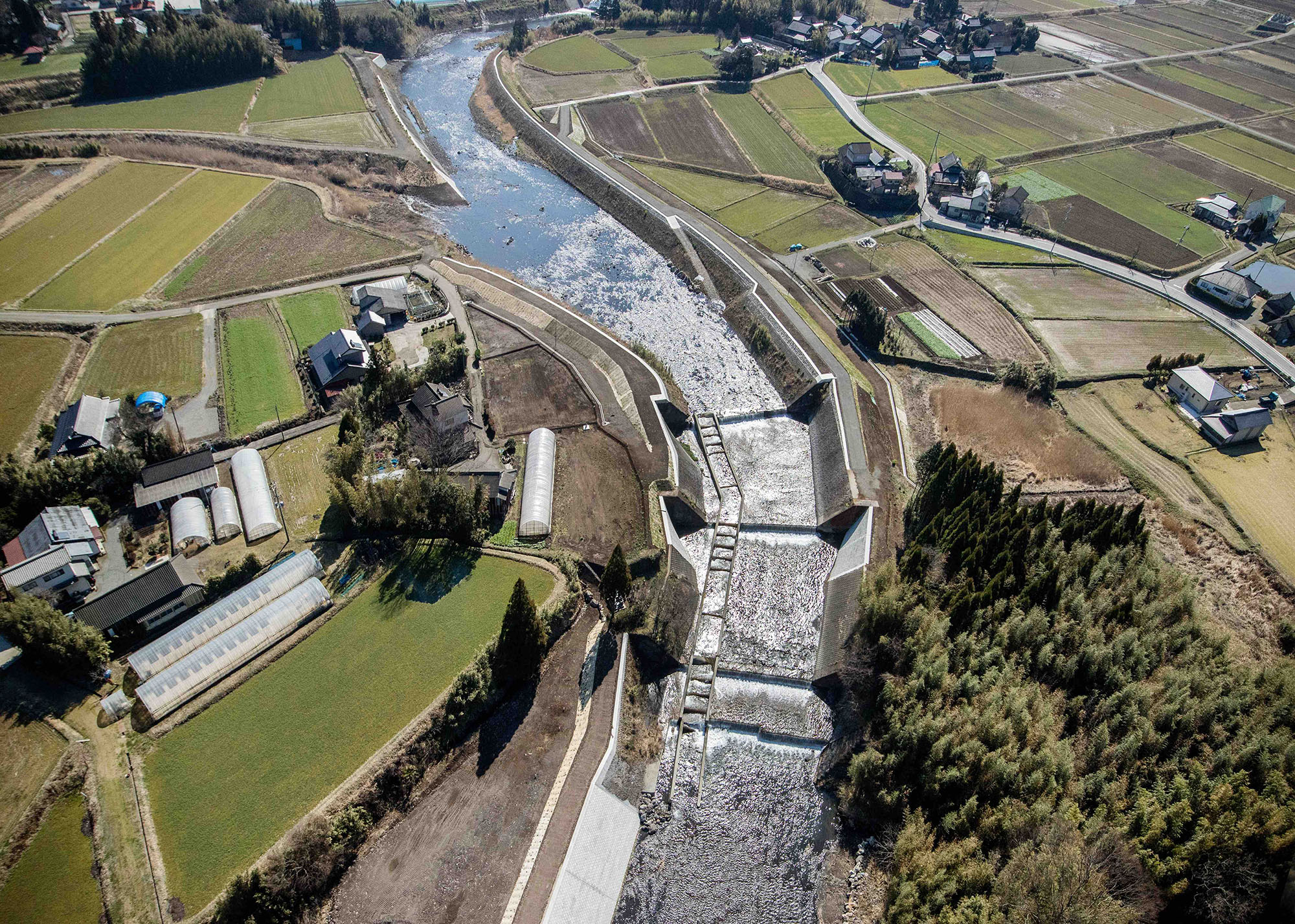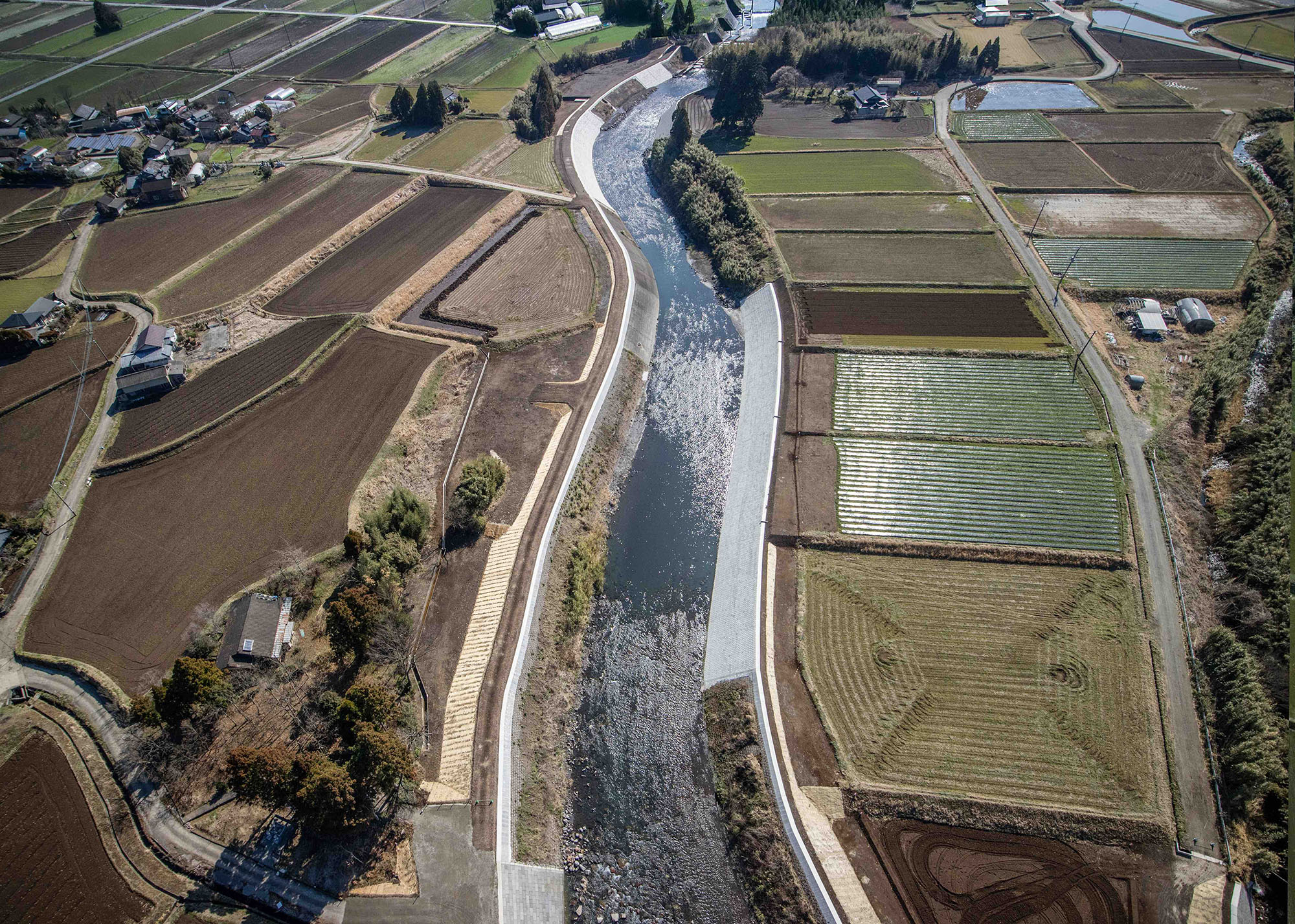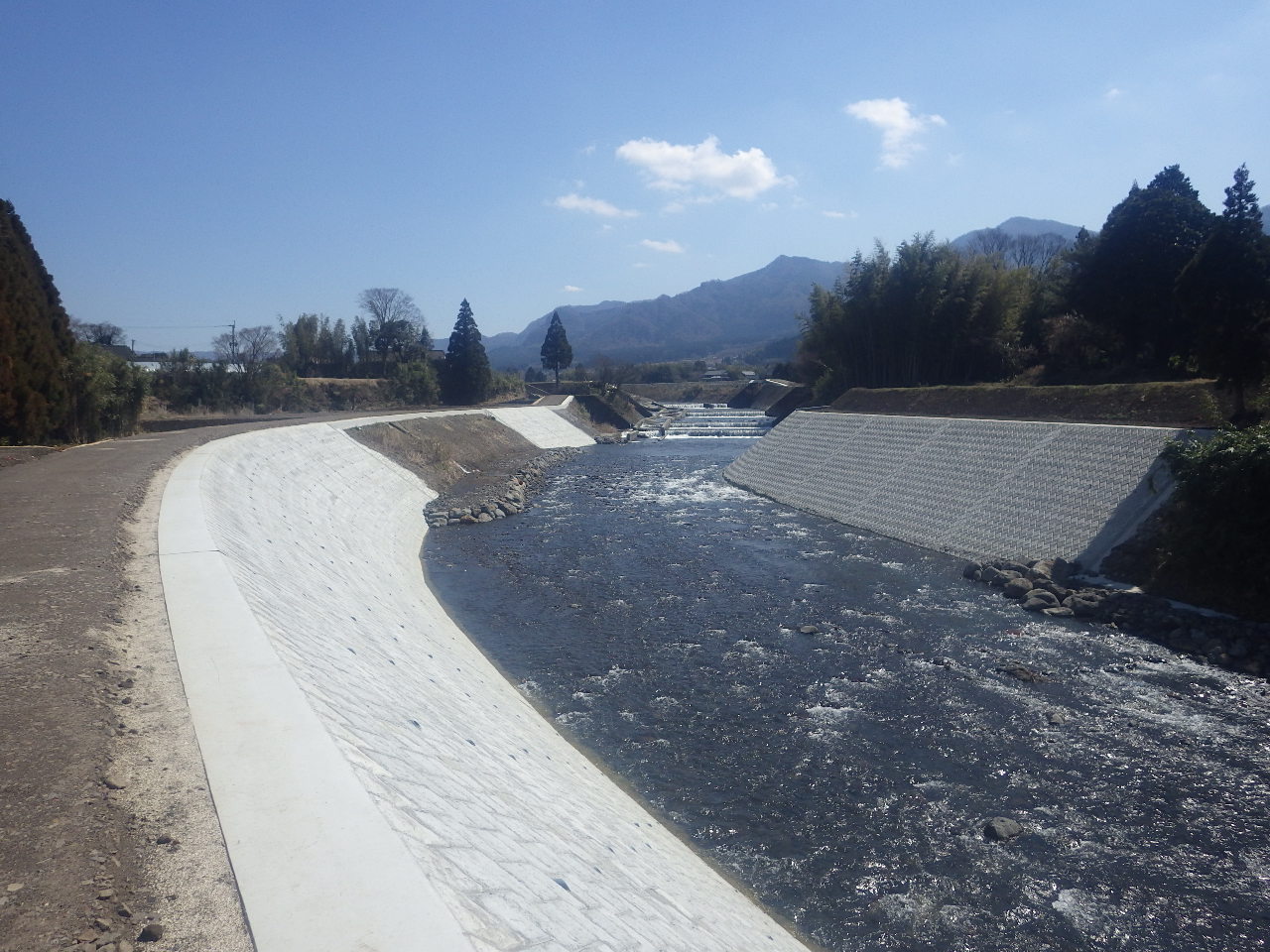 災害復旧工事です。今後の河川増水に対応できる護岸が完成しました。 地域住民の安全を守ることも土木の重要な役割です。【工期:H27.02.18 ~ H28.03.25】