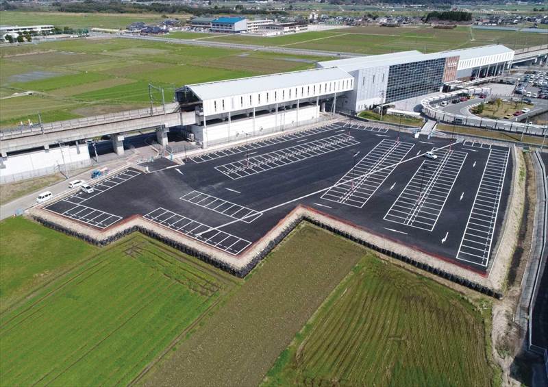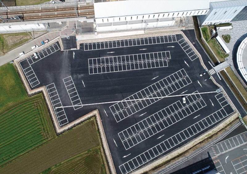 新玉名駅西側駐車場の新設工事です。 地域の皆さまが利用しやすい駐車場が完成しました。 【工期:H29.09.21 ~ H30.03.28】