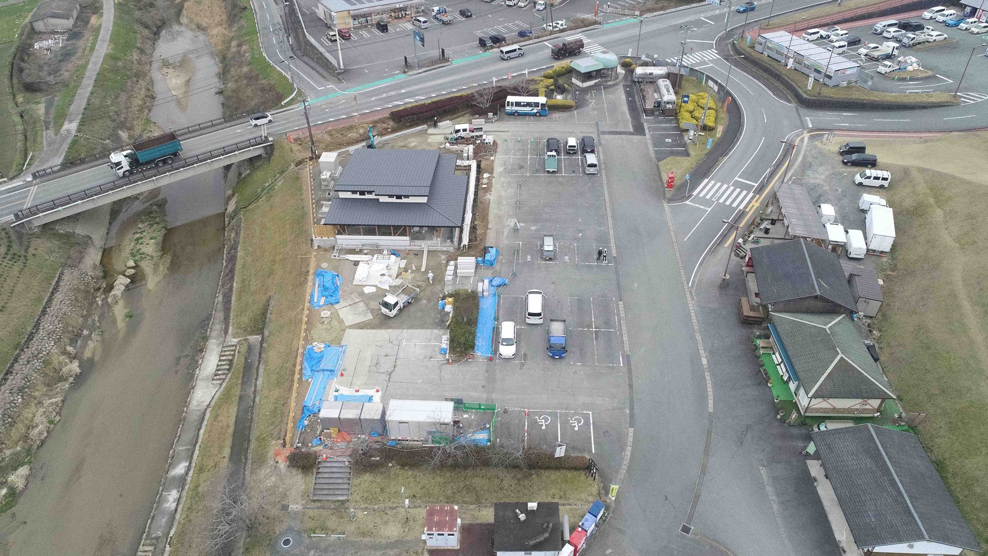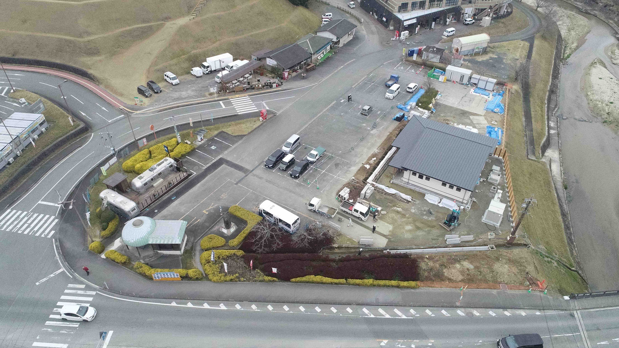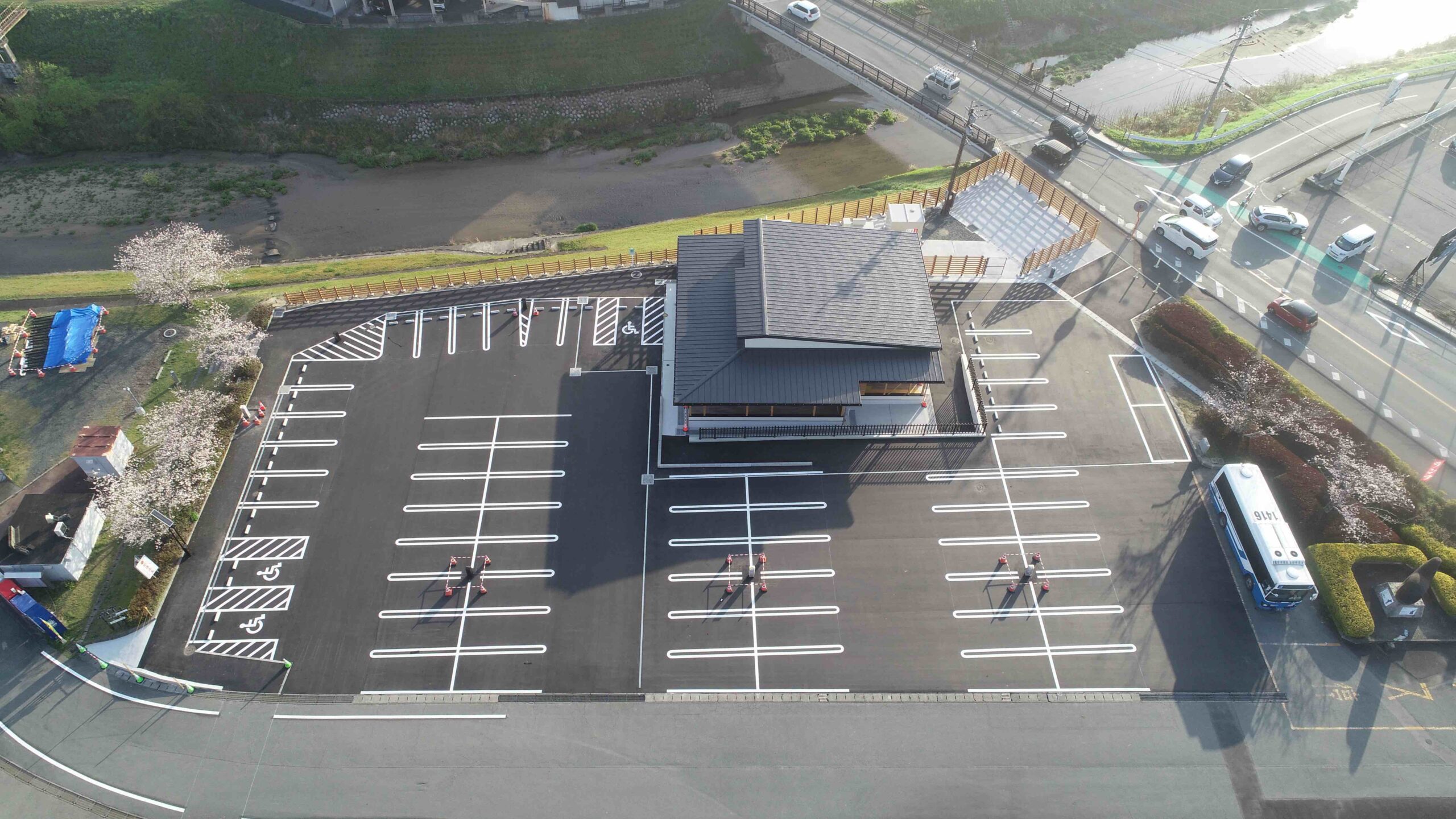 道の駅の駐車場拡張工事です。 舗装がきれいに仕上がりました。【工期:R04.03.15 ~ R05.03.31】